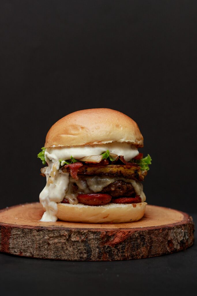 HAMBÚRGUER DE COSTELA COM MAIONESE DE BACON